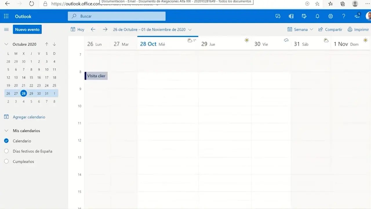 Seguimiento Diario, además, se sincroniza de manera automática con Outlook. Así, como puedes ver bajo estas líneas, puedes comprobar en tu calendario si tienes alguna cita programada, para que no se te pase nada. Y, además, te ayuda a que tengas en todo momento el máximo control sobre las actividades que vas realizando en tu despacho de abogados. Si usas Outlook como gestor de correo electrónico, el contenido del mail puede agregarse como actividad. Y sus adjuntos correspondientes, en ese caso, se incorporarían también a SharePoint como documentación de forma automática.