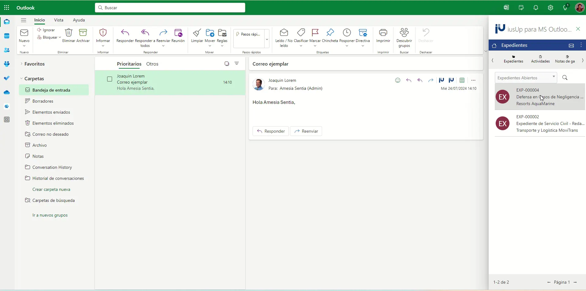 El intercambio de información con clientes y colaboradores es una labor vital en el sector legal. Por eso, no es nada extraño que muchos abogados inviertan gran parte de su tiempo en consultar y contestar correos electrónicos. Para ayudarlos en esta circunstancia, y permitirles aprovechar a su vez toda la potencia que ofrece iusUp, nuestra solución integral para la gestión diaria de despachos de abogados incluye un complemento específico para Outlook. A través de este add-in, es posible seguir trabajando con nuestro software sin tener que salir de este gestor de correo.