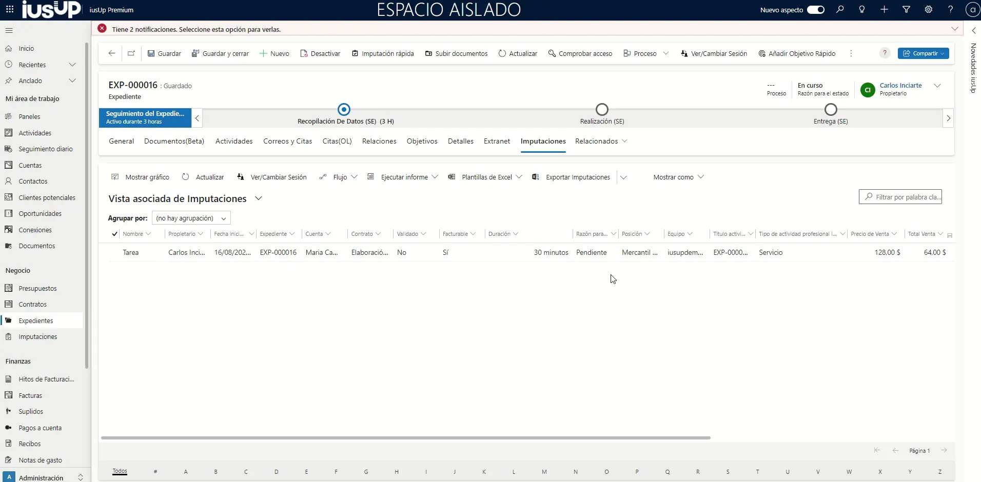 La gestión multidivisa en iusUp no sólo nos permite gestionar de manera fácil la facturación de notas de gasto, pagos a cuenta o suplidos expresados en una moneda diferente la moneda base de su contrato. Además, también podemos imputar servicios adicionales basados en actividad expresados, por ejemplo, en euros, la moneda que usamos habitualmente, en un contrato cuya moneda base predeterminada es el dólar. Así vamos a verlo en el ejemplo que te describiremos a continuación.