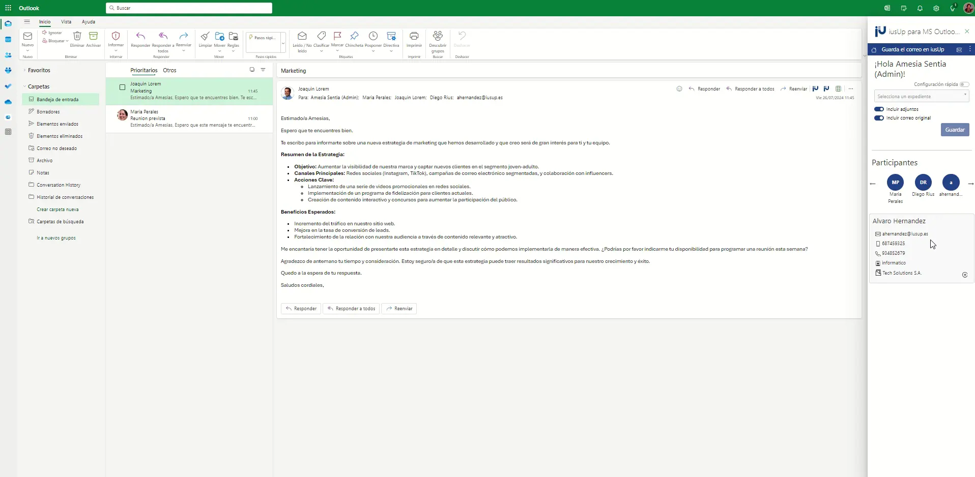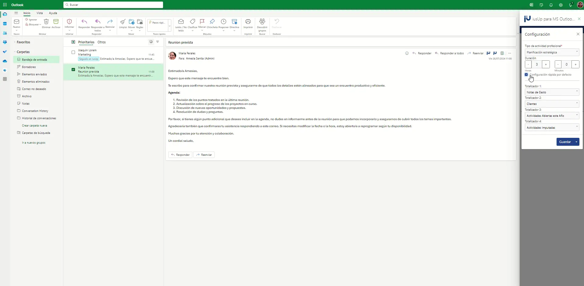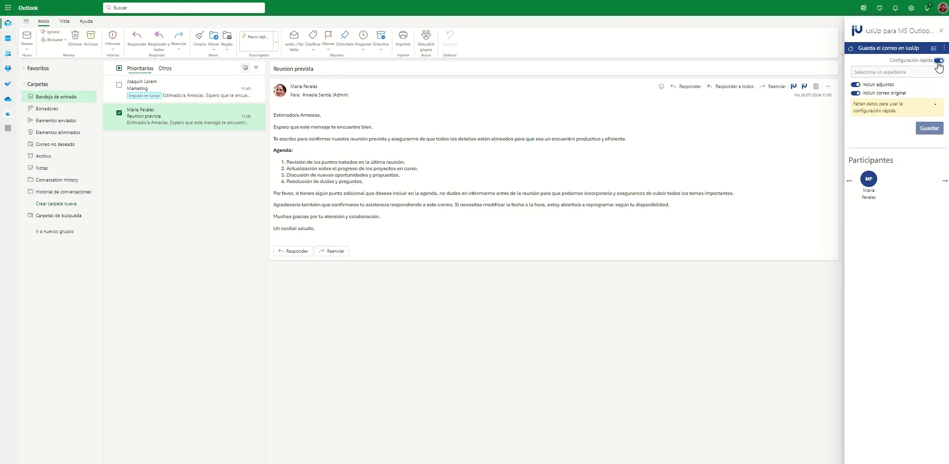 - Consigue una mayor precisión. Con este sistema se reduce la posibilidad de errores que implican las acciones manuales. Con esta funcionalidad del complemento para Outlook que incluye iusUp, la información se transferirá con la máxima precisión.