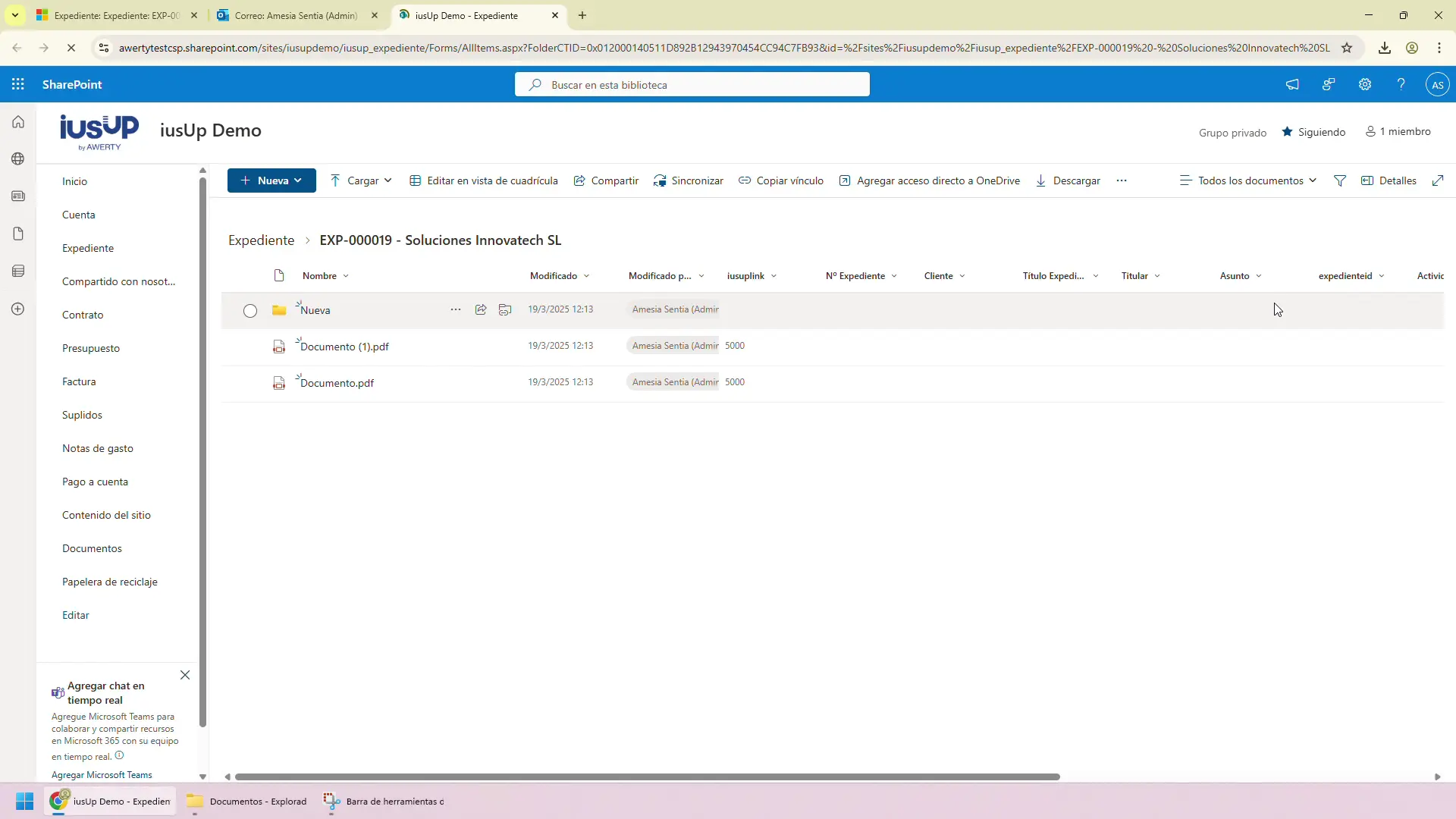 Finalmente, si pulsas en el incono situado más a la derecha dentro de la pestaña «Documentos», accederás a la ubicación de todos los documentos del Expediente en SharePoint.